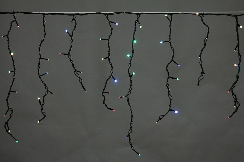 A-056AR RGB светодиодная гирлянда "бахрома" 5x0.6м 180LED черный провод влагозащищен.