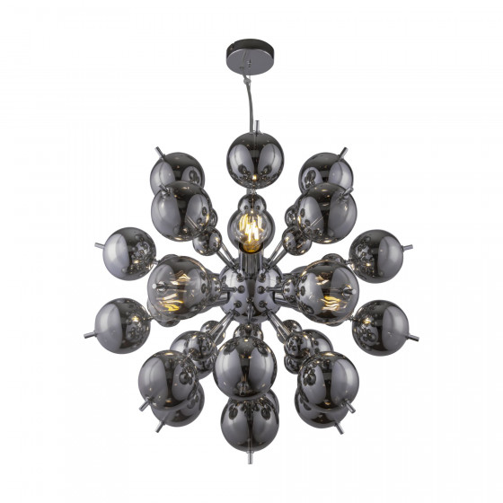 Серия светильников Bolla напоминает пузырьки шампанского или ключевой воды в янтарно-латунном и дымчато-никелированном оттенках. Застывшие в моменте, они превратились в произведения искусства, где свет, играя удивительным образом, отражается в гальванизированном стекле. Светильник состоит из элементов из выдувного стекла с гальванической покраской. В двух вариантах цветов: янтарном и дымчатом. Серия включает подвесные и потолочные светильники.