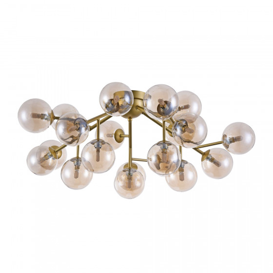 Масштабные скульптурные композиции, образованные многочисленными шарами из выдувного стекла, формируют неповторимый облик светильников серии. На полированных металлических ветвях установлены тонированные плафоны, которые мягко рассеивают и приглушают свет ламп. Модели серии представлены в трех цветах: золото, хром и латунь. Высота подвесных светильников регулируется длиной троса. Серия представлена потолочными, подвесными светильниками, и бра.