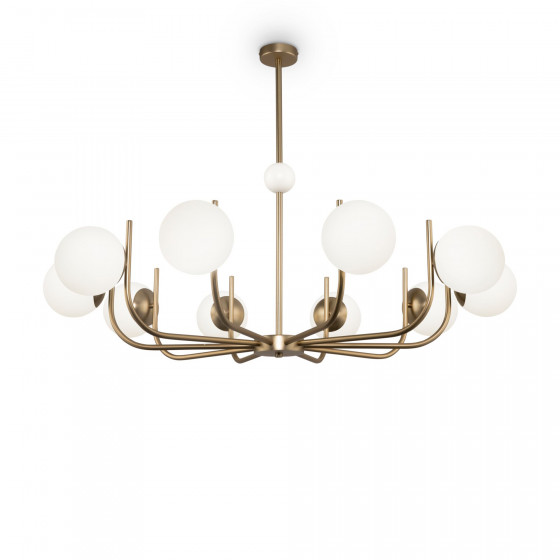 Образ светильников серии Rendez-Vous был вдохновлен дизайном середины XX века и романтичной амосферой свиданий в уютных парижских кафе. Крупные белые бутоны, распустившиеся на едва различимых стеблях из латуни, создают парадное, но одновременно игривое настроение в помещении. Благодаря цвету стеклянных плафонов создается мягкое рассеянное комфортное освещение. Дизайн светильника, сочетающий в себе яркий цвет арматуры и мягкую матовую фактуру плафонов, пронизан чередованием простых форм с закругленными элементами. Он отлично впишется как в строгие, так и в пышно декорированные интерьеры.исполнении. Именно благодаря цвету стеклянных плафонов создается мягкое рассеянное освещение, комфортное человеческому. Светильник отвечает тренду моды на ретро-дизайн предметов интерьера.