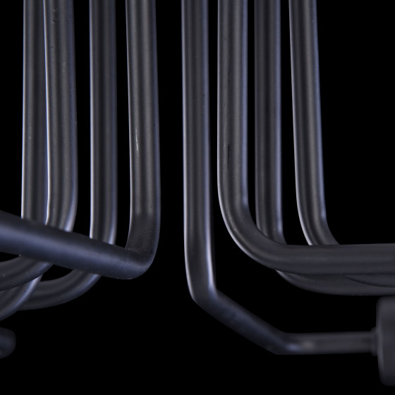 Светильники серии привлекают к себе внимание необычным решением арматуры. Стальные трубки, согнутые под прям углом, расходятся от центральной чаши в разных направлениях, напоминая технические коммуникации. Конструкция светильников полностью выкрашена в черный цвет, что придает им дополнительной выразительности. Для лучшего визуального эффекта рекомендуется использовать лофт-лампы Voltega.