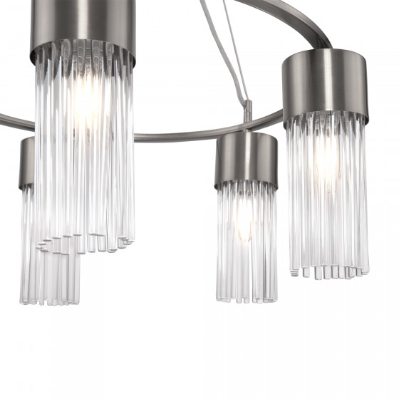 Свет – источник баланса, гармонии и наслаждения. Серия Esala в очередной раз напоминает нам об этом. Композиция строится вокруг металлического кольца – одной из наиболее сбалансированных и благозвучных фигур. Цилиндрические плафоны, расположенные на окружности, распределяют световой поток максимально равномерно. Они выполнены из прозрачных стеклянных трубок. Металлическая арматура представлена в двух благородных оттенках на выбор: латунь и никель. Кольцо крепится к основанию при помощи регулируемых тросов. Вы может менять их высоту, подстраивая светильник под низкие или высокие потолки. Эклектичная композиция, объединившая элегантную неоклассику и современные тренды, легко интегрируется в интерьеры, оформленные в стиле модерн, ар-деко, фьюжн, контемпорари. Серия представлена подвесной люстрой и бра, что позволяет организовать комплексное освещение пространства в единой стилистике.