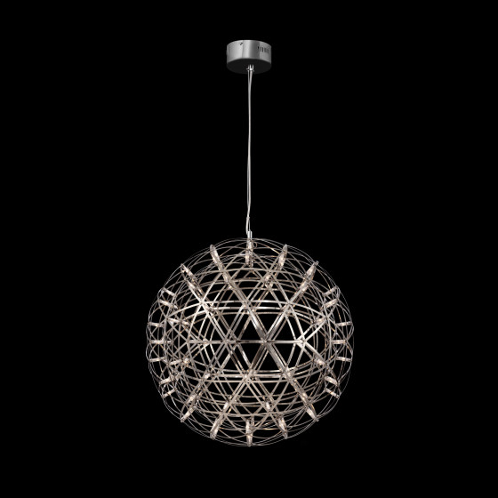 Серия Amber представляет воздушные светильники-сферы, выполненные в трендовом стиле хай-тек. Хромированная металлическая арматура и плафон, сотканный из переплетающихся лент, создают запоминающийся современный образ. Встроенные светодиоды экономят электроэнергию и красиво подсвечивают сферу. В выключенном состоянии светильник выглядит как абстрактное произведение искусства и является полноправной частью декоративного ансамбля интерьера. Серию составляют подвесы различного диаметра – их можно использовать по отдельности, а можно комбинировать в группы. Для обстановки в стиле хай-тек, минимализм, лофт, помещений кафе и ресторанов светильник станет идеальным решением.