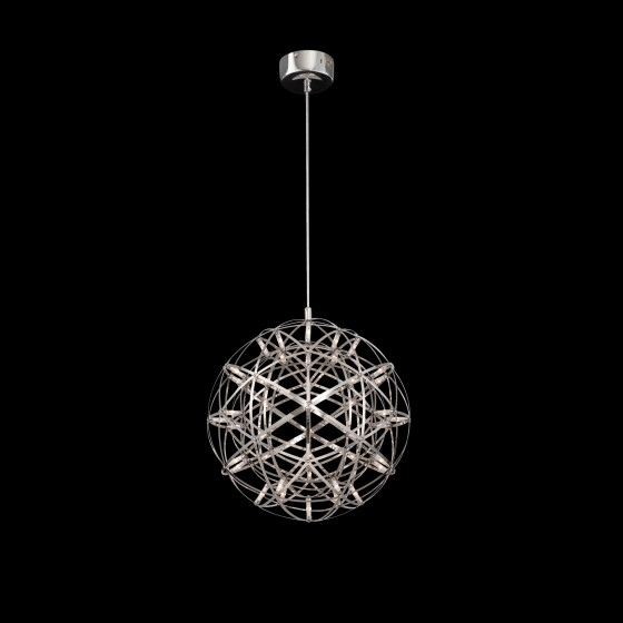 Серия Amber представляет воздушные светильники-сферы, выполненные в трендовом стиле хай-тек. Хромированная металлическая арматура и плафон, сотканный из переплетающихся лент, создают запоминающийся современный образ. Встроенные светодиоды экономят электроэнергию и красиво подсвечивают сферу. В выключенном состоянии светильник выглядит как абстрактное произведение искусства и является полноправной частью декоративного ансамбля интерьера. Серию составляют подвесы различного диаметра – их можно использовать по отдельности, а можно комбинировать в группы. Для обстановки в стиле хай-тек, минимализм, лофт, помещений кафе и ресторанов светильник станет идеальным решением.