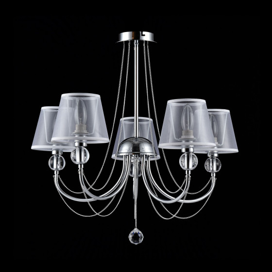 Светильники станут украшением интерьера, придадут ему шарм. Арматура светильников - из металла, а абажуры – из прозрачной органзы и ПВХ. Каждый из светильников серии дополнен тонкими серебристыми цепочками, а основания рожков украшены стеклянными прозрачными шарами. Завершающий элемент дизайна светильников Beverly – это декоративные подвески.