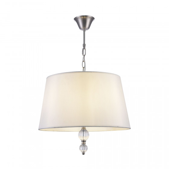 Серия светильников для интерьеров гостиных, спален и офисов в современном стиле. Арматура из акрила и метала цвета "никель". Арматура дополнена декоративными элементом из акрила (шарики). Белые абажуры сделаны из текстиля на ПВХ.