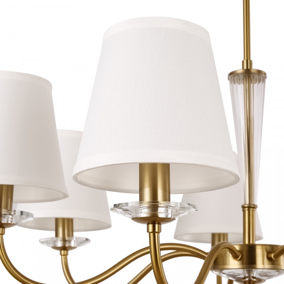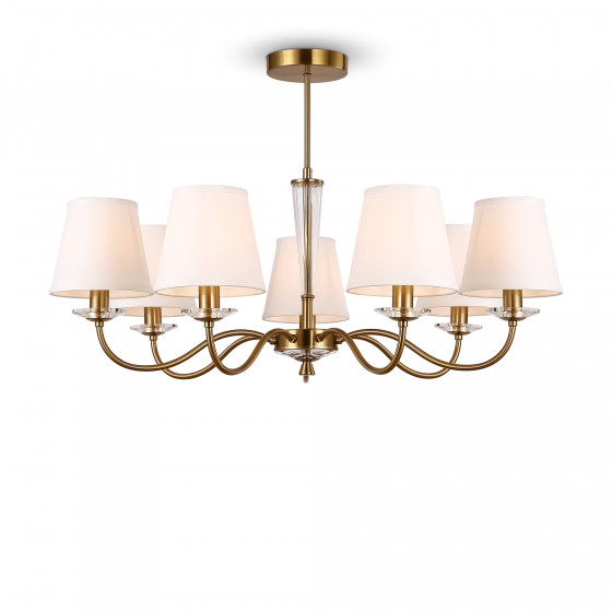 Непревзойденная классика в её современном прочтении представлена в серии Osborn. Она лишена чрезмерного украшательства, свойственного античным моделям, но сохраняет подчеркнутую элегантность, плавность форм и грацию. Вы можете выбрать один из двух оттенков арматуры: латунь или никель. Строгость классических форм смягчает стеклянный декор центральной части и розеток. В сочетании с белоснежными текстильными абажурами композиция приобретает легкость и воздушность. Источники света, скрытые под матовой тканью, дают приятный и комфортный световой поток. Модели отлично приживутся в различных интерпретациях классического стиля, подчеркнут достоинство и благородство ар-деко, модерна, неоклассики. Широкий ассортимент серии включает люстры на 7, 5 и 3 плафона, а также бра и настольную лампу.