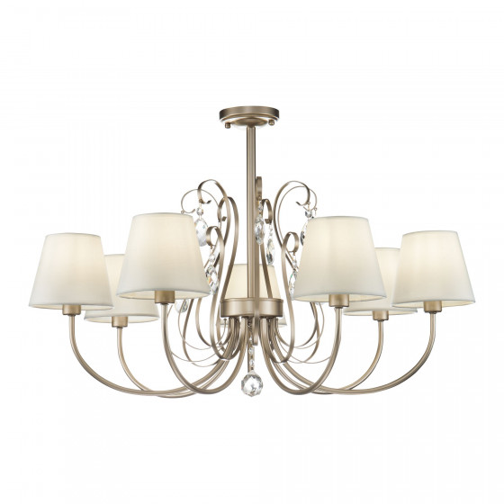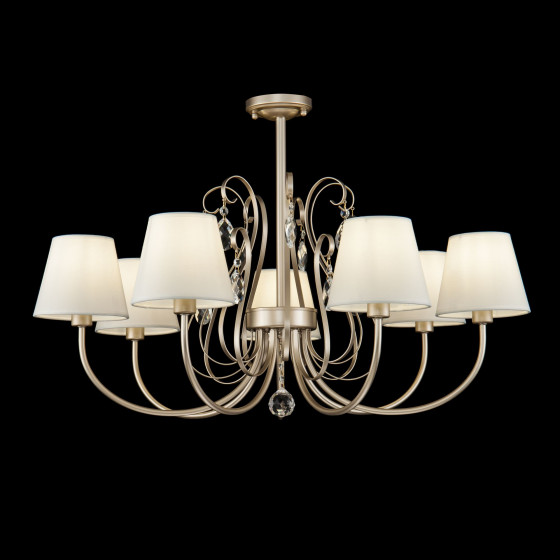 Серия Vanda выполнена в классическом стиле. Благодаря своему строгому и элегантному дизайну светильники могут дополнить интерьер гостиной, спальни и даже гардеробной комнаты. Металлическая арматура цвета матового золота, абажуры сделаны из белой ткани. Светильники украшены декоративными подвесками.