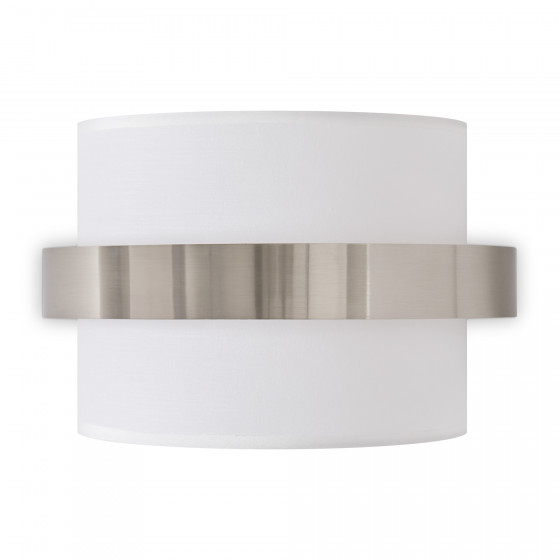 Цилиндрической формы абажур из ткани белого цвета. Декоративная парящая окантовка из металла в цвет арматуры. Регулируется по длине. Компактные размеры подходят для низких потолков и небольших интерьеров. Металлическая арматура, цвет - латунь и никель. Источник света — лампа с цоколем Е14, E27 и для настенного бра дополнительный LED с температурой свечения 3000 K.
