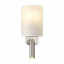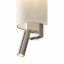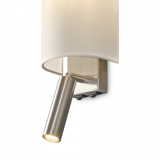 Цилиндрической формы абажур из ткани белого цвета. Декоративная парящая окантовка из металла в цвет арматуры. Регулируется по длине. Компактные размеры подходят для низких потолков и небольших интерьеров. Металлическая арматура, цвет - латунь и никель. Источник света — лампа с цоколем Е14, E27 и для настенного бра дополнительный LED с температурой свечения 3000 K.