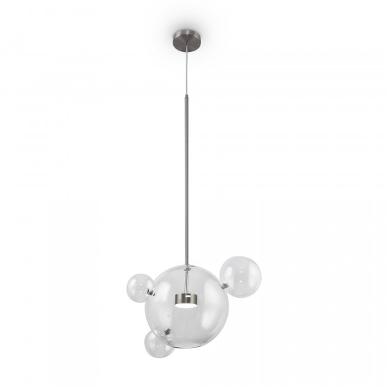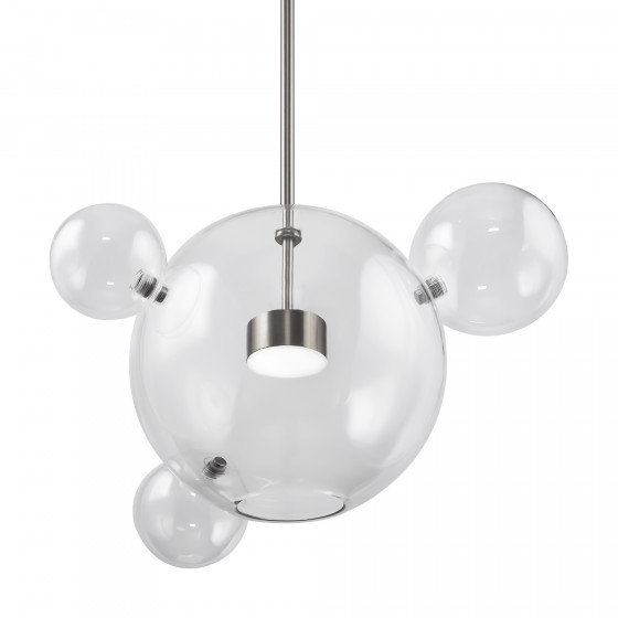 Материал арматуры – металл, цвет – латунь. Плафон – прозрачное глянцевое стекло. Трендовая сферическая форма. Энергоэффективные LED-источники обеспечивают равномерный яркий свет.