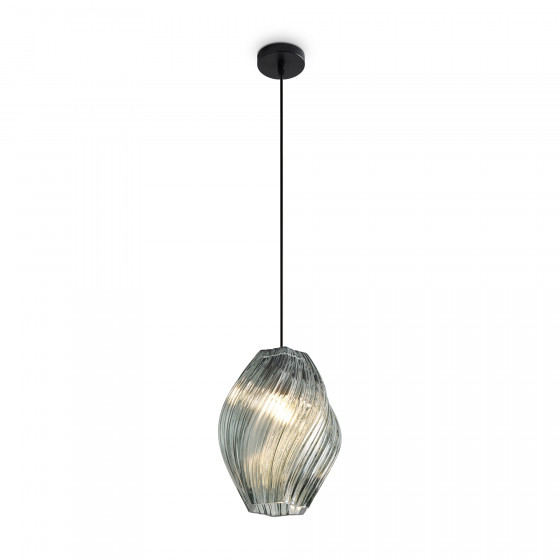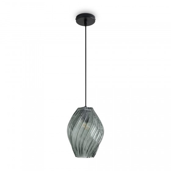 Материал арматуры металл черного цвета и плафоны, выполненные из стекла. Подвесные светильники в двух размерах и разных цветовых решения: дымчатый, зеленый, янтарный и темно-сине-зеленый. Светильники с цоколем E27. Рельефное стекло флористической формы создают выразительную игру бликов в пространстве и преломляя свет, наполняют интерьер переливами цвета. Рекомендовано использование в одном интерьере несколько размеров и цветов.