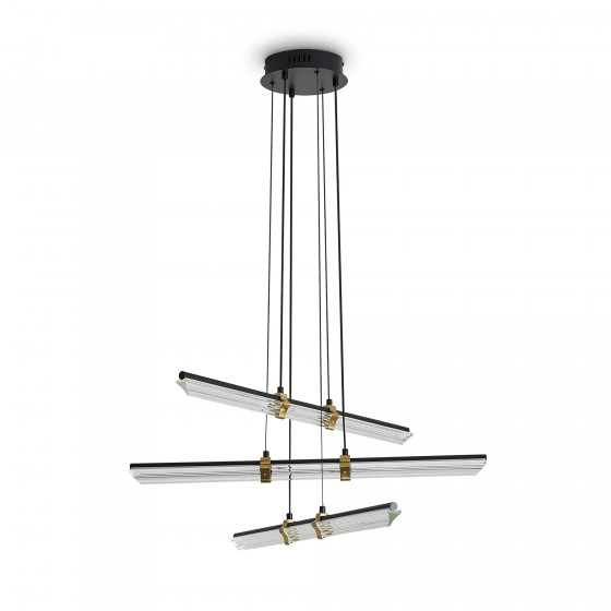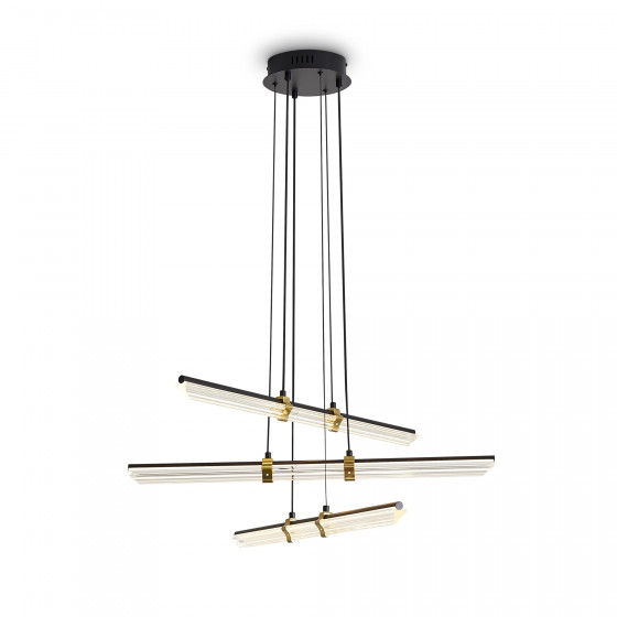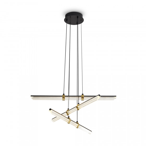 Материал арматуры — металл, цвет — черный и латунь. Все модели серии Brilliance оснащены LED-источником света. Цветовая температура 2700К. Прозрачные стеклянные рассеиватели. Регулируемая высота. Особенностью серии являются поворотные LED-трубки, позволяющие менять направление светового потока и создавать различные световые композиции.