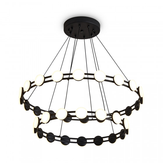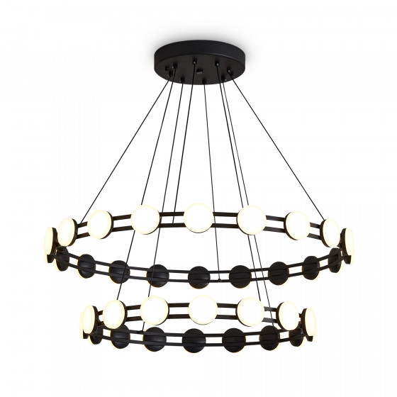 Подвесные светильники серии Collar с одноярусным и двухъярусным расположением колец с LED источниками света. Доступны два размера: диаметр 600 мм и 800 мм. Арматура — металл черного цвета. Цветовая температура 3000K, угол рассеивания 120°. Высота регулируется. Плафоны из акрила равномерно освещает пространство. Светильники диммируемые. Минималистичный дизайн подходит для различных типов интерьеров, обеспечивая эффективное освещение пространства.