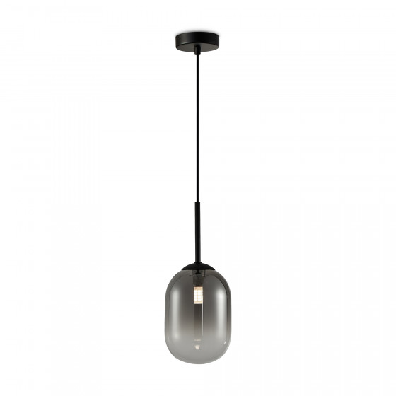 Арматура из металла матового черного цвета. Плафон из стекла с окрасом растяжка. Цвет дымчатый. Модификация — настенные, потолочные и настольные светильники. Источник света — лампа. Цоколь G9.