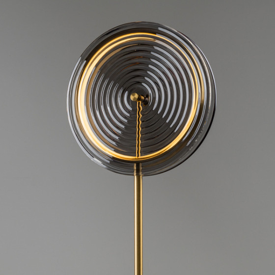 Арматура - металл. Цвет арматуры латунь. Плафоны из стекла в форме леденцов выполнены в четырех цветах: серый, зеленый, прозрачный и желто-оранжевый. Широкий спектр типов светильников: торшеры, настенные бра и подвесы. LED источник света. Цветовая температура 3000К.