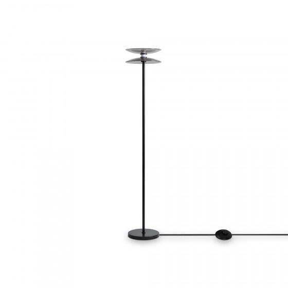 Материал арматуры — металл, цвет — черный. Плафоны выполнены из стекла дымчатого цвета. Светильники представлены в подвесном и напольном исполнении и оснащены LED-источником света с цветовой температурой 3000К. Сочетание металла и затемненного стекла создает выразительную атмосферу в современных интерьерах таких как минимализм и лофт.